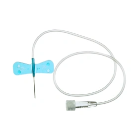 Igła motylek Terumo - zapewnia komfort pacjenta. Nasadka koloru niebieskiego.