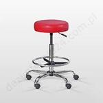Taboret medyczny dla operatora, posiadający regulację wysokości za pomocą stopy.