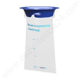 Torba na wymiociny z przezroczystego materiału. Zawiera saszetkę z absorbentem. Plastikowa obręcz ułatwia obsługę.