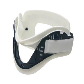 Kołnierz ortopedyczny z otworem o uniwersalnym rozmiarze i możliwościach regulacji. Wykonany z niewchłanialnej pianki.