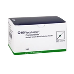 Igła do zamkniętego systemu BD Vacutainer, ścięta pod niskim kątem i pokryta silikonem. Nasadka koloru zielonego.