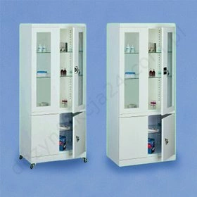 Szafa lekarska 2 - drzwiowa SML-104 do połowy przeszklona na kółkach