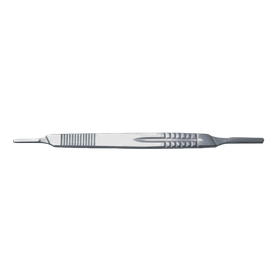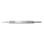 Uchwyt do skalpela, kompatybilny z ostrzami od rozmiaru 10 do 15 C. Ze stali nierdzewnej. Posiada podziałkę na uchwycie.