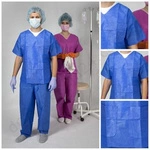 Jednorazowy, niejałowy komplet chirurgiczny składający się z wygodnej bluzy z krótkim rękawem i spodni.
