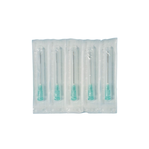 - Jałowa igła iniekcyjna. Nasadka koloru zielonego.