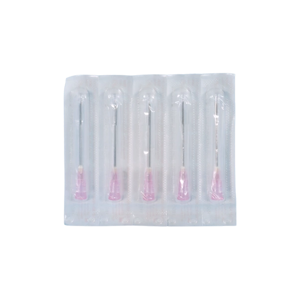• Jałowa igła iniekcyjna. Nasadka koloru różowego.