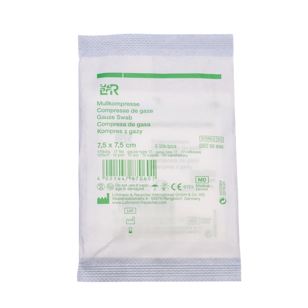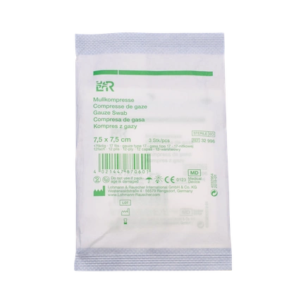 Kompresy gazowe 17. nitkowe 12. warst. 7,5 x 7,5 cm. (3 szt.) sterylne - L&R