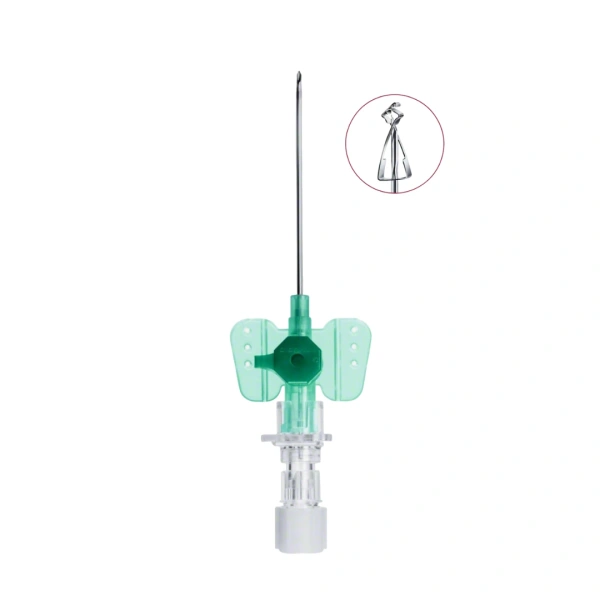 - Elastyczne skrzydełka mocujące o skośnej płaszczyźnie dla lepszej stabilizacji kaniuli w żyle,
