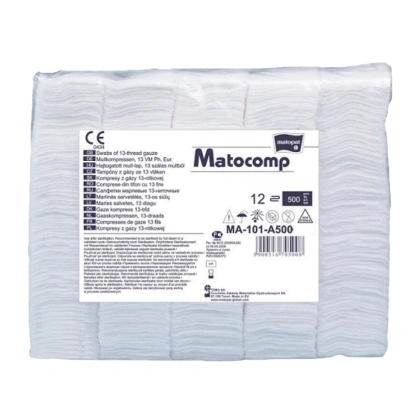 Kompresy gazowe Matocomp 13-nitkowe, 12-warstwowe (opakowanie 500 szt.)