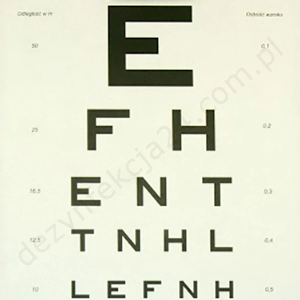 - Tablica okulistyczna (Snellena) literowa E - obraz prosty