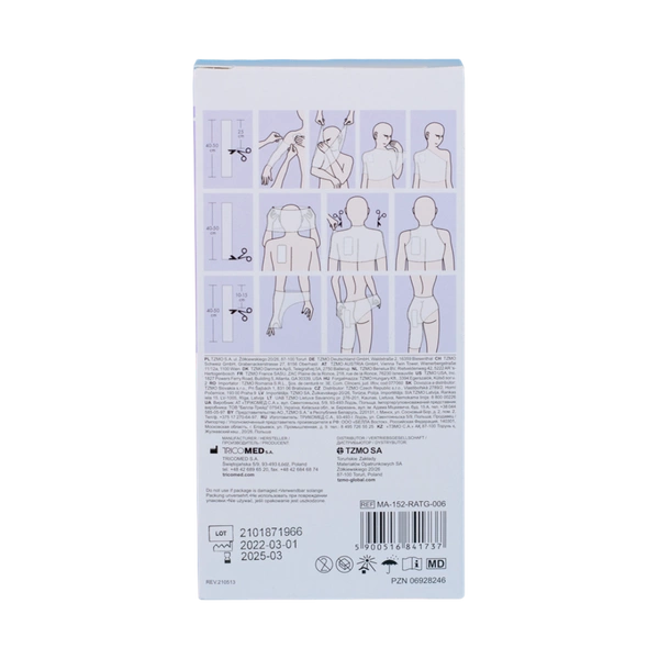 - Elastyczna siatka do podtrzymywania opatrunku. Do zastosowania na klatkę piersiową, brzuch lub biodra.