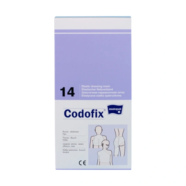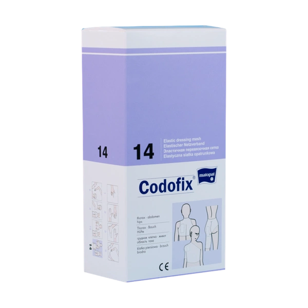 Używanie siatki CODOFIX zapewnia komfort zarówno pacjentowi, jak i osobie pielęgnującej chorego. Siatka CODOFIX pozwala na bieżącą obserwację procesu gojenia oraz na zachowanie pełnej swobody ruchu. Wyrób jednorazowego użytku. Producent nie zaleca sterylizacji.