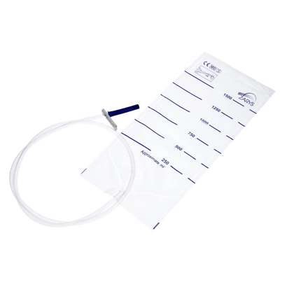 - Jednorazowy worek niesterylny do lewatywy o pojemności 1500 ml z zaciskiem.