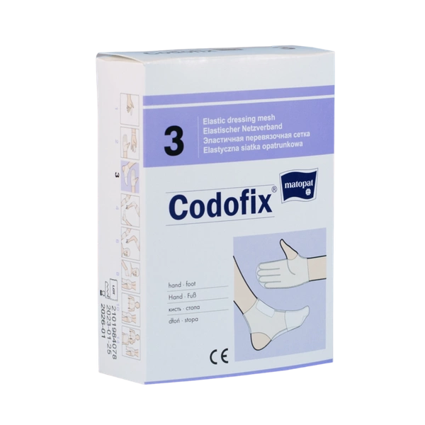 Używanie siatki CODOFIX zapewnia komfort zarówno pacjentowi, jak i osobie pielęgnującej chorego. Siatka CODOFIX pozwala na bieżącą obserwację procesu gojenia oraz na zachowanie pełnej swobody ruchu. Wyrób jednorazowego użytku. Producent nie zaleca sterylizacji.