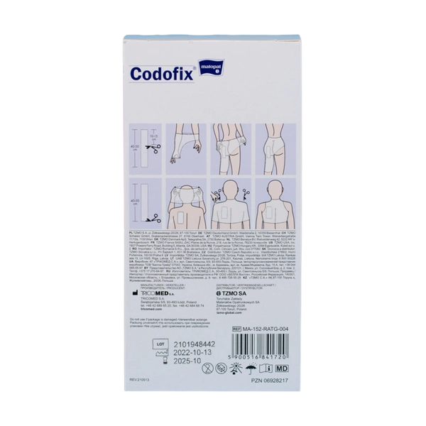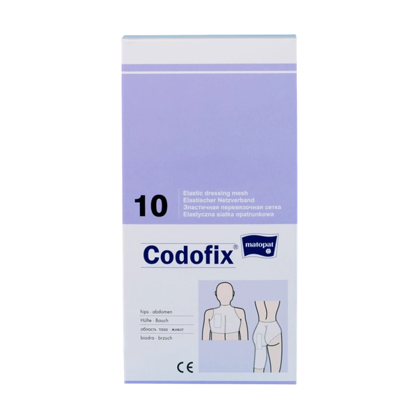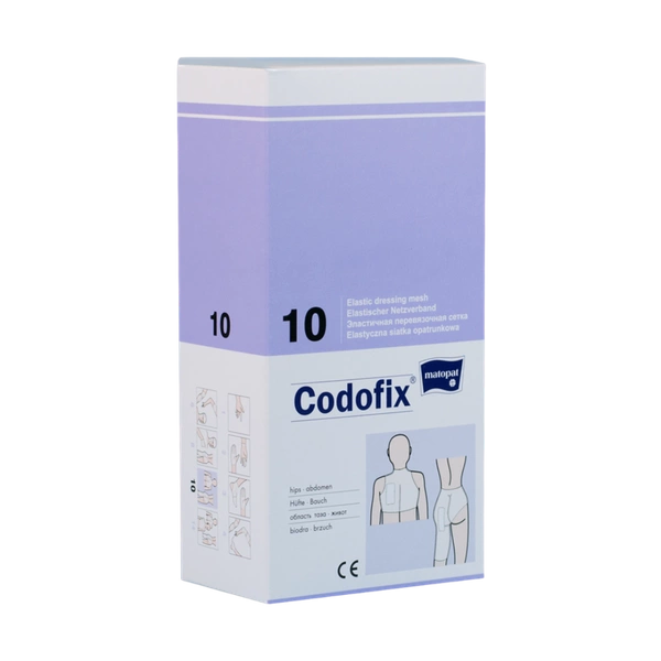 Używanie siatki CODOFIX zapewnia komfort zarówno pacjentowi, jak i osobie pielęgnującej chorego. Siatka CODOFIX pozwala na bieżącą obserwację procesu gojenia oraz na zachowanie pełnej swobody ruchu. Wyrób jednorazowego użytku. Producent nie zaleca sterylizacji.