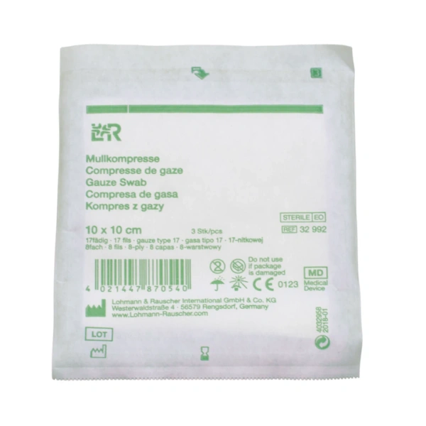 - Kompres jałowy z gazy 17. nitkowej, 8.warstwowej. Do bezpośredniego opatrywania ran.