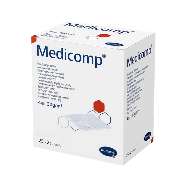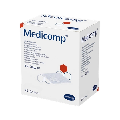 Opinie o Kompresy włókninowe 4. warst. MEDICOMP 7,5 x 7,5 cm. (25 x 2 szt.) sterylne