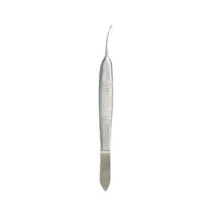- Pęseta oczna z ząbkami, do zabiegów na rogówce lub twardówce. Wielokrotnego użytku, ze stali nierdzewnej.