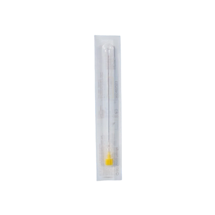 - Igła do pobrania płynu mózgowo-rdzeniowego, wprowadzania znieczuleń i leków. Sterylna, jednorazowego użytku. Nasadka koloru żółtego.