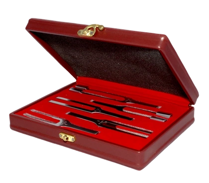 - Zestaw stroików przeznaczonych do przeprowadzania testów słuchu. Hz od 128 do 1048.
