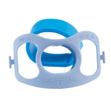 - Jednorazowy ustnik dla dorosłych z opaską mocującą. Wymiary 22 x 28 mm