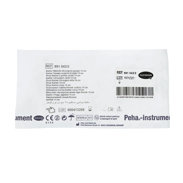 Jednorazowe kleszczyki chirurgiczne proste Kocher 14 cm nr kat. [991042] - Hartmann.