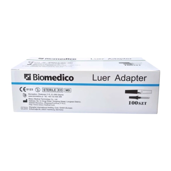Adaptery Luer są jednorazowego użytku. Przeznaczone do pobierania krwi z cewników lub do stosowania z kaniulami typu Luer.