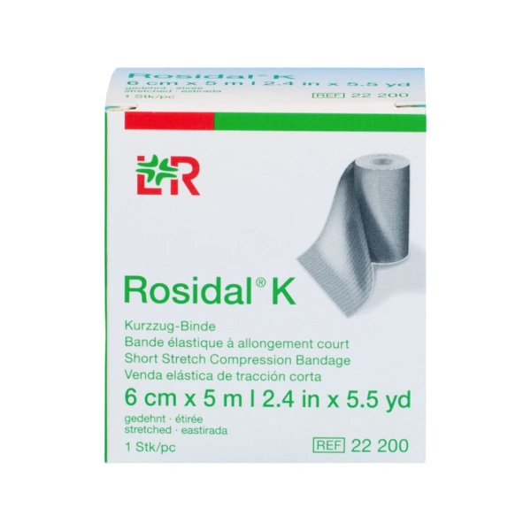 Rosidal K jest tekstylnym bandażem elastycznym o krótkim naciągu i silnym ucisku.