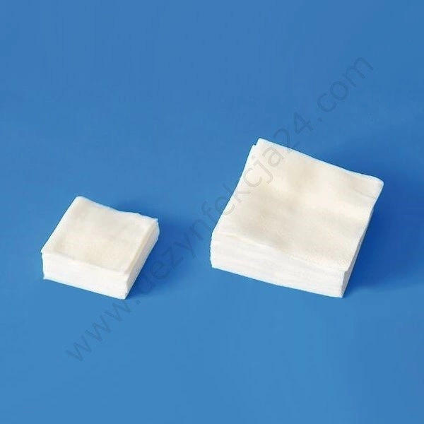 Niejałowe kompresy z hydrofilowej gazy bawełniane. Bielone metodą bezchlorową, odpowiednie do opatrywania różnego rodzaju ran.