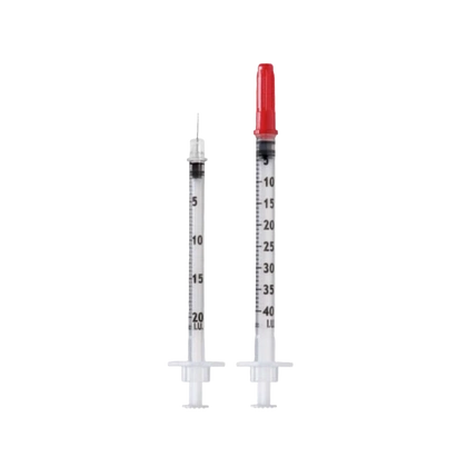 - Insulinówka 3. częściowa, sterylna. Skala U-40. Strzykawka z igłą wtopioną 30G.