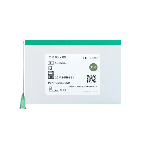 Igły iniekcyjne Sterican firmy BBraun 21G 0,8 x 80 mm. REF: 4665465; opakowanie 100 sztuk.