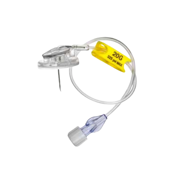 • Igła ze szlifem łyżeczkowym dostosowana do iniekcji pod wysokim ciśnieniem. Posiada skrzydełka i dren. Nasadka koloru żółtego.