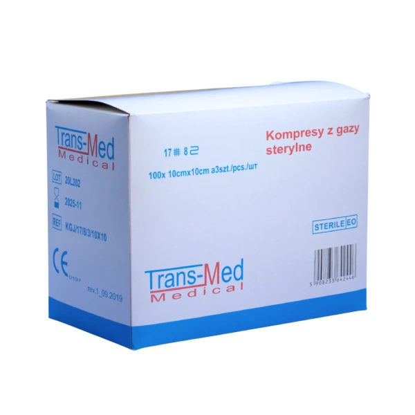 Kompresy gazowe 17. nitkowe 8. warst. 10 x 10 cm. (op. 100 x 3 szt.) sterylne - TM