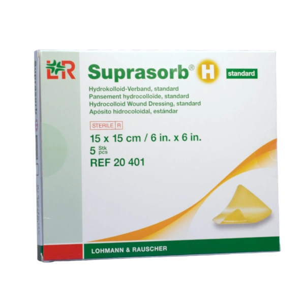 To sterylny, okluzyjny opatrunek hydrokoloidowy tworzący wilgotne środowisko rany dostosowane do optymalnego gojenia. Suprasorb H stosuje się w przypadku ran o lekkim i umiarkowanym wysięku. Na folię poliuretanową opatrunku nałożono warstwę hydrokoloidową, która w kontakcie z raną pęcznieje uwalniając żel wiążący wysięk i złuszczoną/obumarłą skórę. W ten sposób opatrunek dostosowuje się do struktury rany.