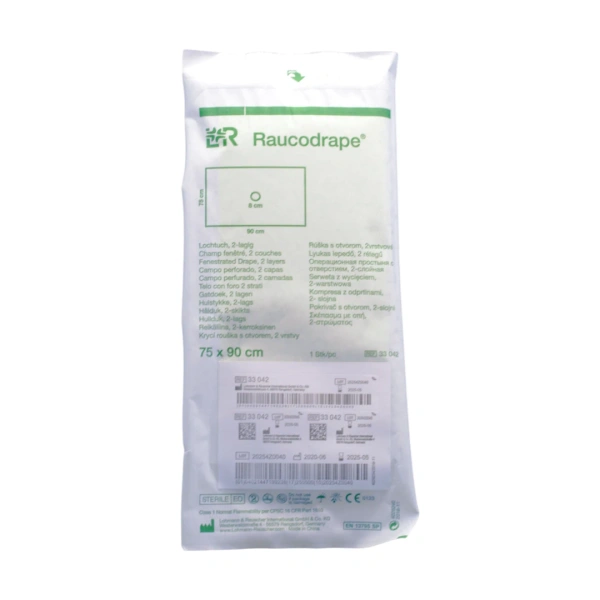 Raucodrape - Serweta 2. warstwowa 75 x 90 cm, z otworem 8 cm, sterylna