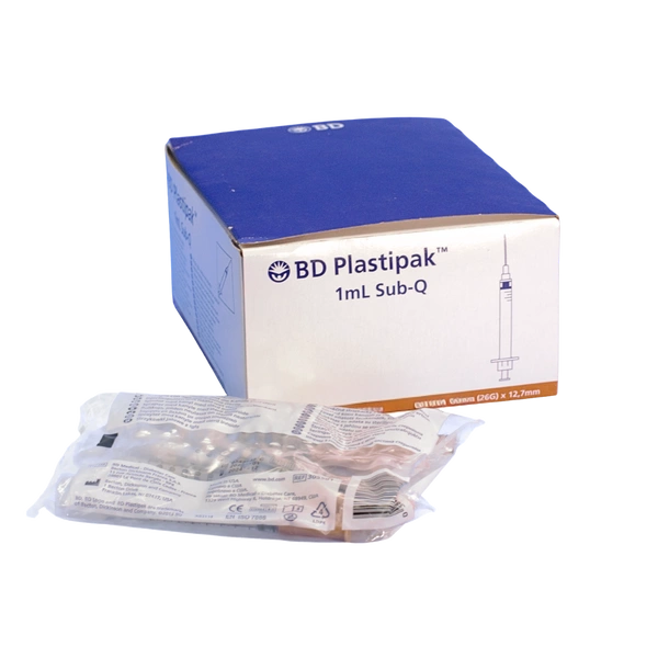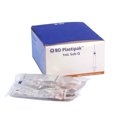 Strzykawka trzyczęściowa 1 ml, z igłą SUB-Q 0,45 x 12,7 mm (100 szt.) - BD Plastipak
