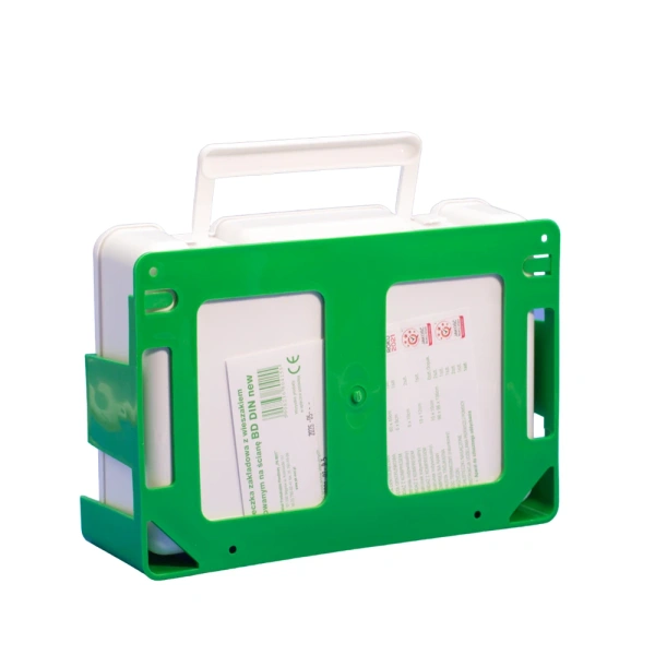 Wyposażenie apteczki spełnia normę DIN 13164 + aparat do sztucznego oddychania