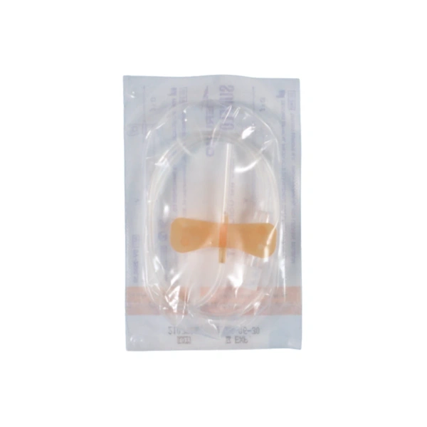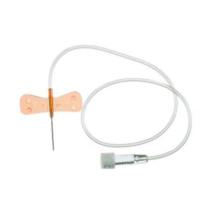 - Igła motylek Terumo - zapewnia komfort pacjenta. Nasadka koloru pomarańczowego.