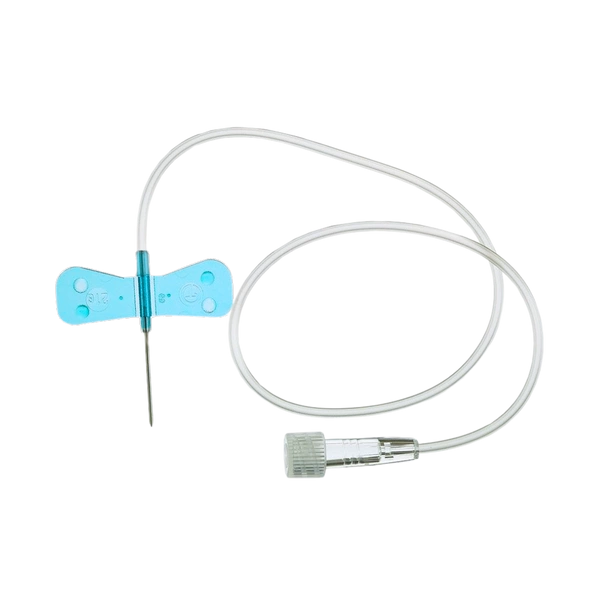 - Igła motylek Terumo - zapewnia komfort pacjenta. Nasadka koloru niebieskiego.