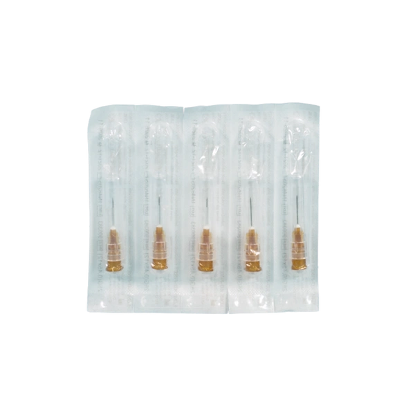 - Jałowa igła iniekcyjna. Nasadka koloru brązowego.
