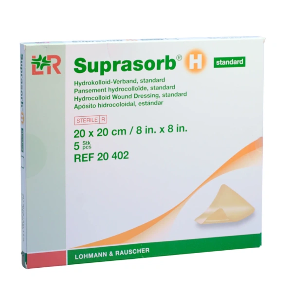 To sterylny, okluzyjny opatrunek hydrokoloidowy tworzący wilgotne środowisko rany dostosowane do optymalnego gojenia. Suprasorb H stosuje się w przypadku ran o lekkim i umiarkowanym wysięku. Na folię poliuretanową opatrunku nałożono warstwę hydrokoloidową, która w kontakcie z raną pęcznieje uwalniając żel wiążący wysięk i złuszczoną/obumarłą skórę. W ten sposób opatrunek dostosowuje się do struktury rany.