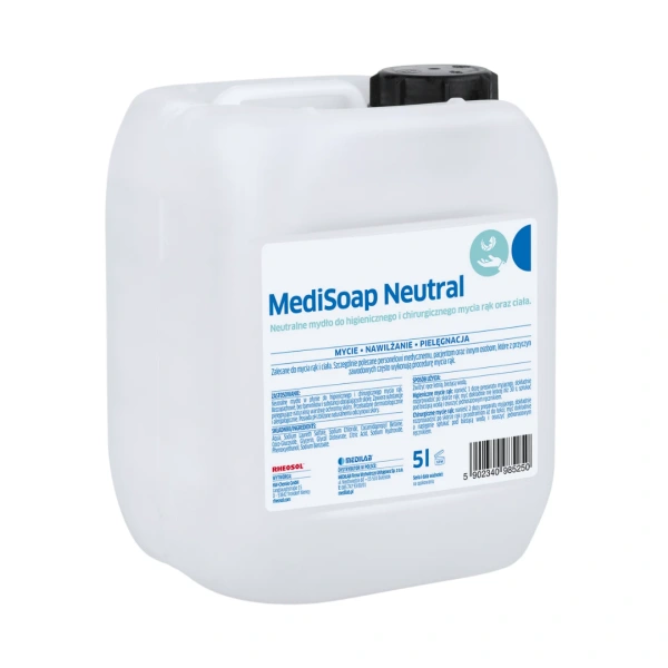 - Neutralne mydło w płynie do higienicznego i chirurgicznego mycia rąk oraz ciała.