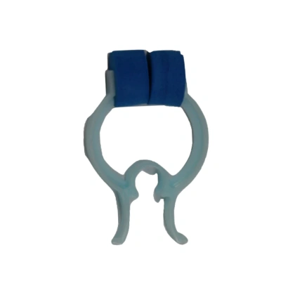 Jednorazowy, plastikowy klips na nos z miękkimi, piankowymi zatyczkami.