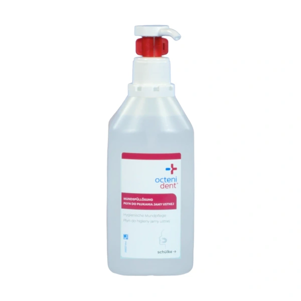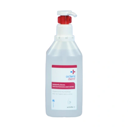 - Zawierający octenidynę, bezalkoholowy płyn do płukania, dekontaminacji oraz nawilżania jamy ustnej i gardła