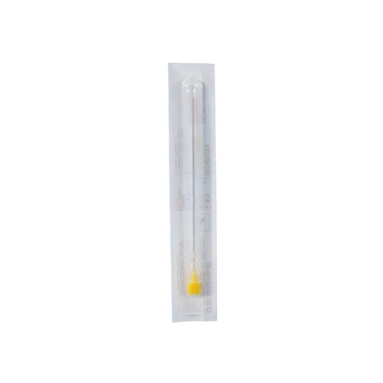 - Igła do pobrania płynu mózgowo-rdzeniowego, wprowadzania znieczuleń i leków. Sterylna, jednorazowego użytku. Nasadka koloru żółtego.