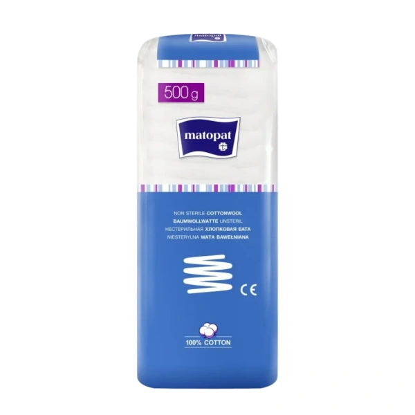 Wata niejałowa wykonana w 100% z czystej bawełny naturalnej. Przeznaczona do stosowania podczas zabiegów ambulatoryjnych, w gabinetach kosmetycznych oraz podczas opieki nad pacjentem.  Waty nie należy stosować przy zabiegach operacyjnych oraz bezpośrednio na ranę. Produkt stanowi materiał chłonny do stosowania jako dodatkowa, zewnętrzna warstwa nakładana na opatrunek