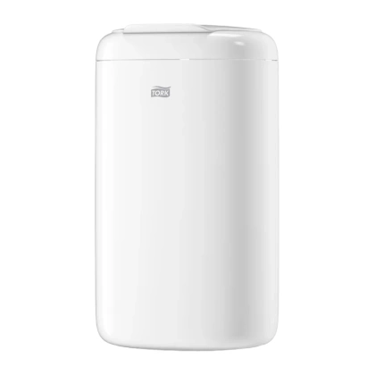 - Funkcjonalny kosz na śmieci Tork, kolor biały. Możliwość montażu do ściany.