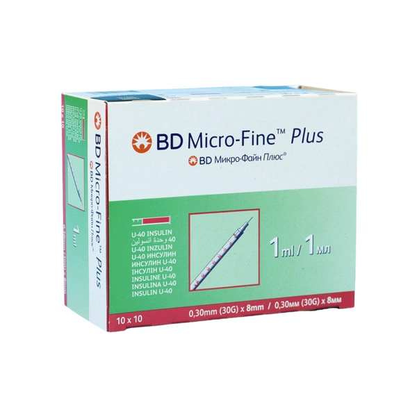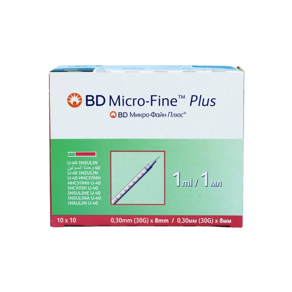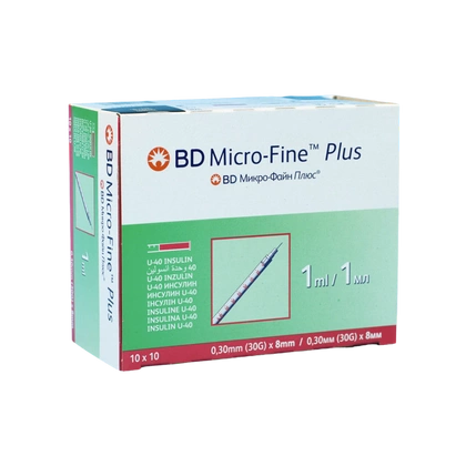 Strzykawka trzyczęściowa do insuliny 1 ml U-40 z igłą 0,3 x 8 mm (100 szt.) - BD