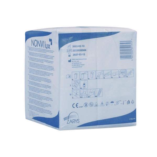 NONVI lux 10 x 10 cm. Kompresy włókninowe 4-warstwowe (100 szt.) nr. kat. ZARYS-NL100-100