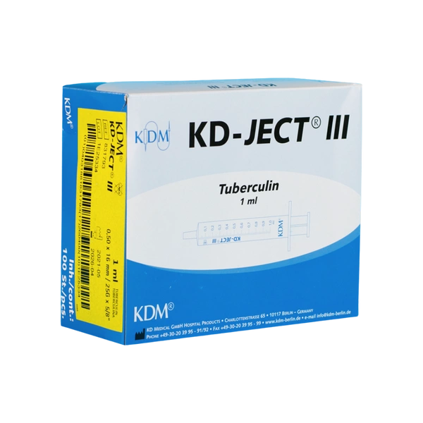 Strzykawka do tuberkuliny 1 ml z igłą nakładaną 25G 0,5 x 16 mm (100 szt.) - KD-JECT